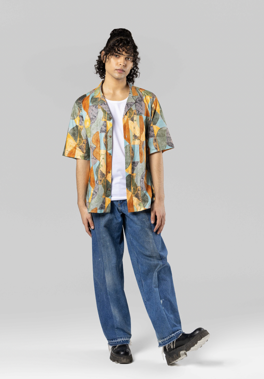 The BOMBAE Shirt is an ode to organized chaos. With a bold, abstract print in rust, ochre, slate, and seafoam, it channels the color and rhythm of the city that inspired it. The relaxed camp collar silhouette keeps it easy, while the pattern brings the statement.