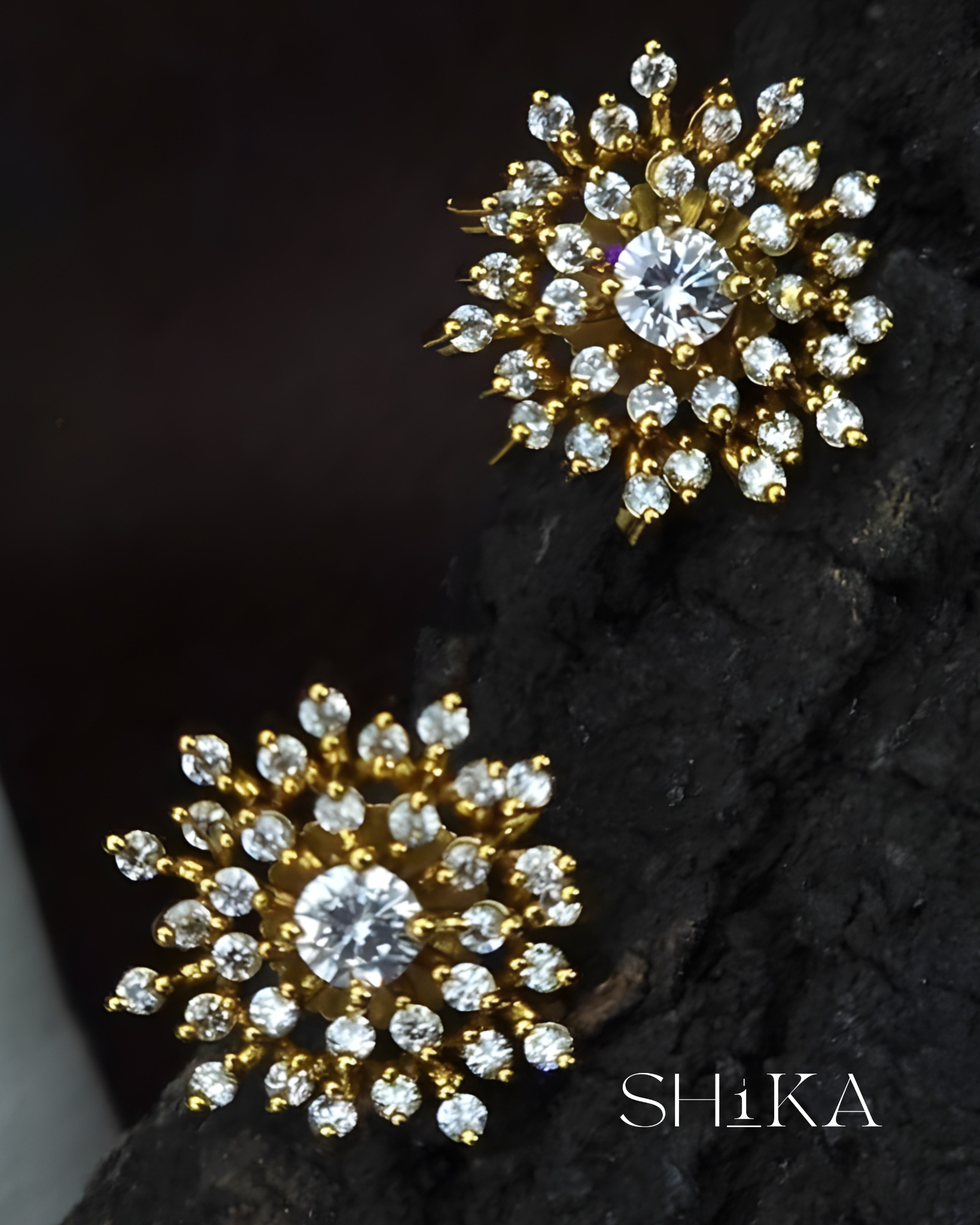 A sparkling pair of CZ studs with a sunburst design. Featuring a central clear stone surrounded by concentric layers of brilliance, these earrings are ideal for elegant daywear or festive evenings.