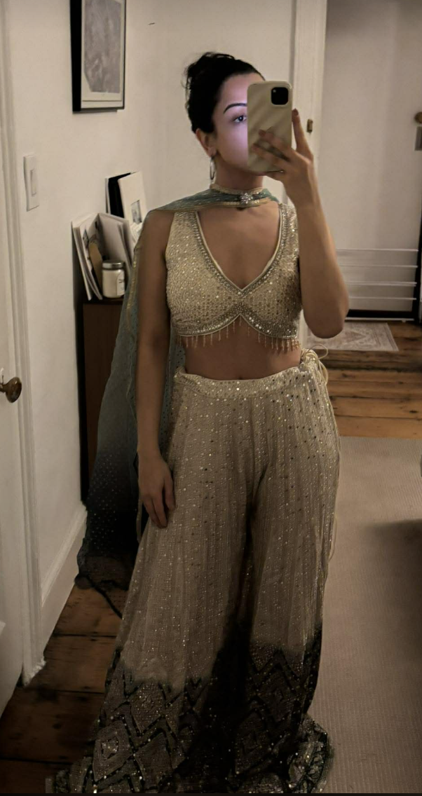 Perfect for: sangeet, reception, wedding guest looks, engagement parties, or any event where you want to stand out without wearing a lehenga.