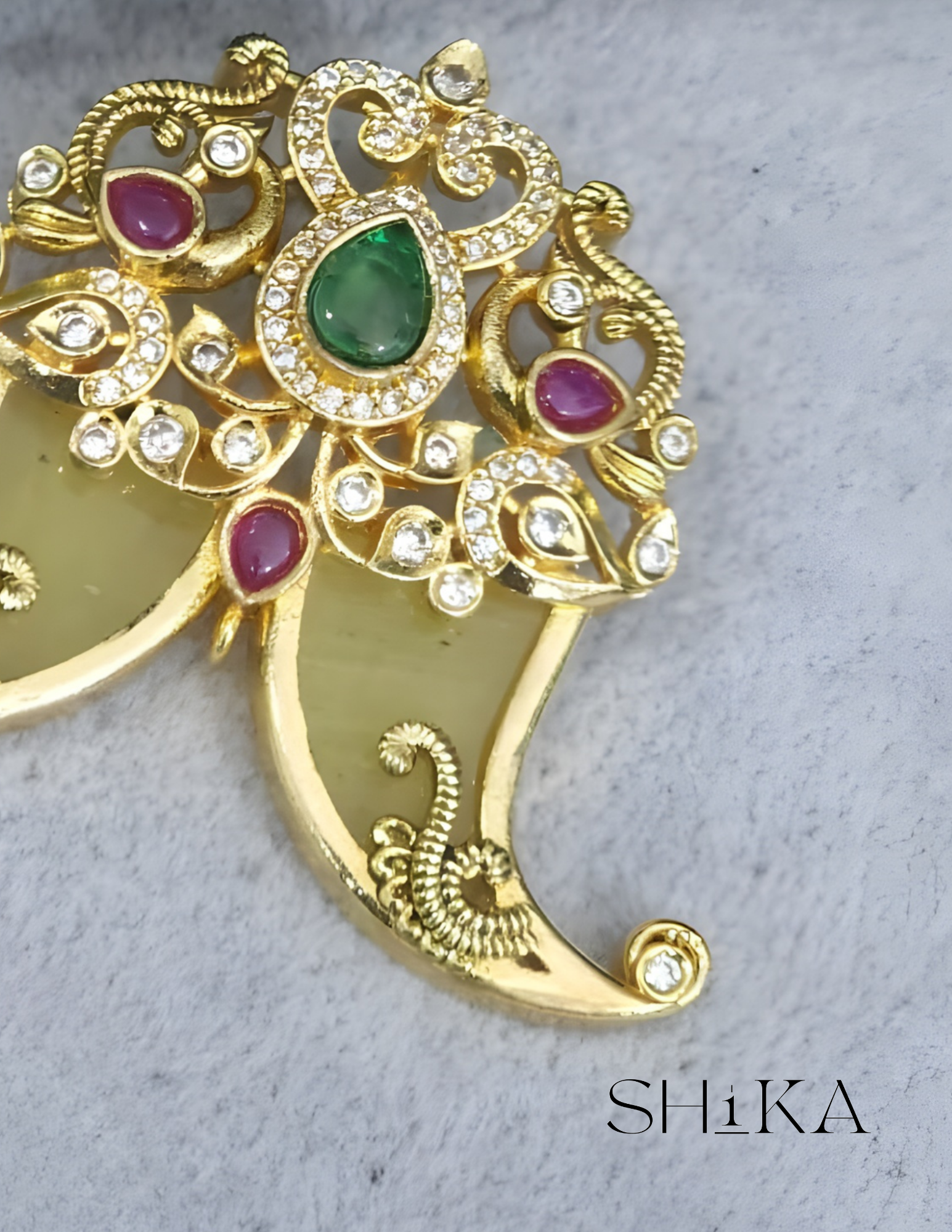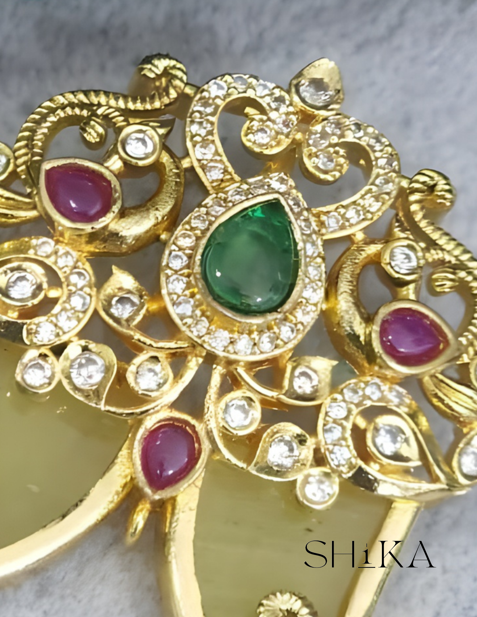 Materials used: Brass Alloy with Antique Gold Finish, CZ Stones, Pearls