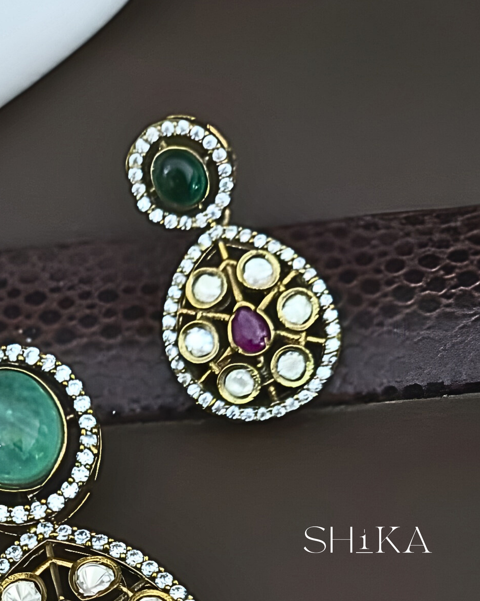 Materials used: Brass Alloy with Antique Gold Finish, CZ Stones