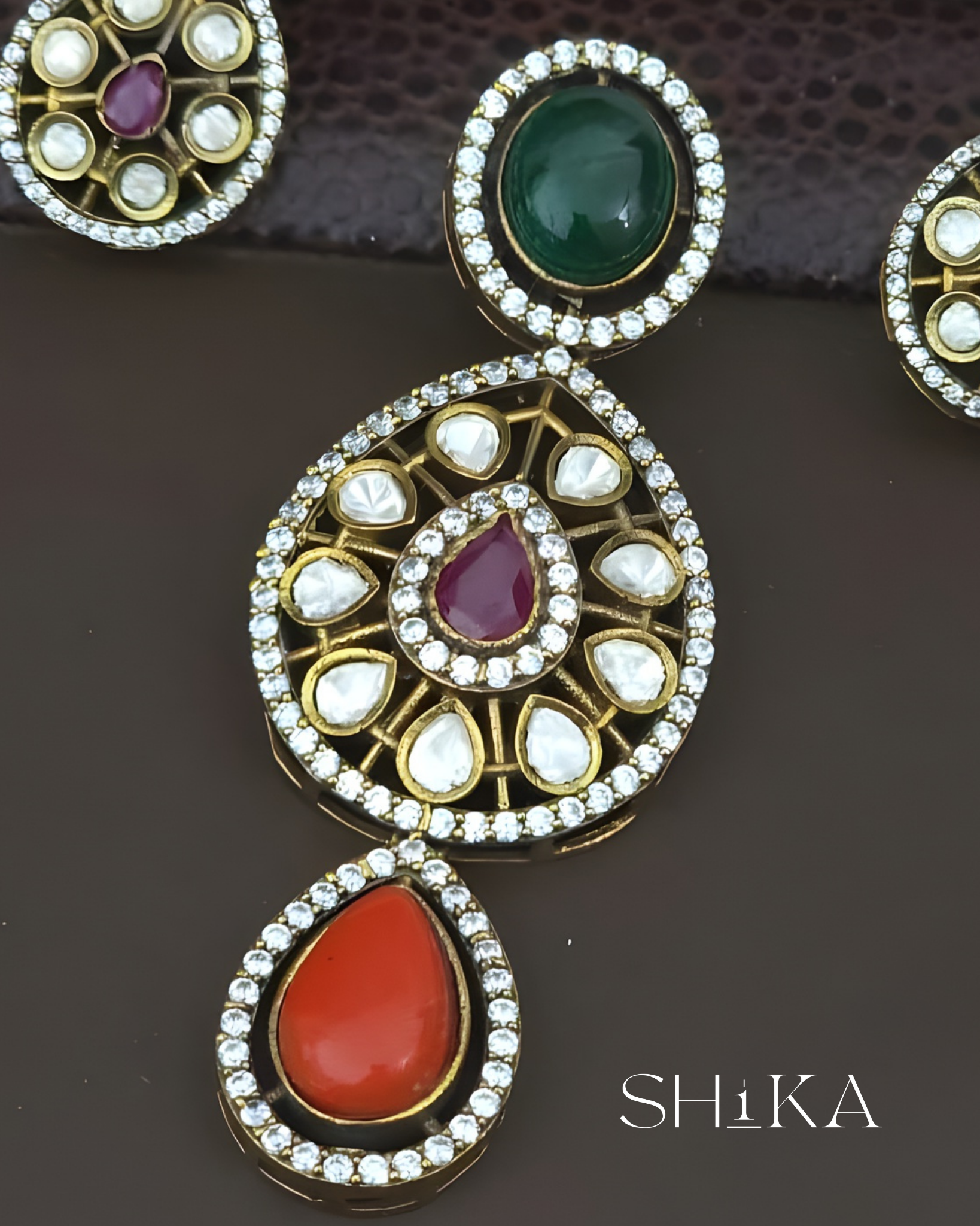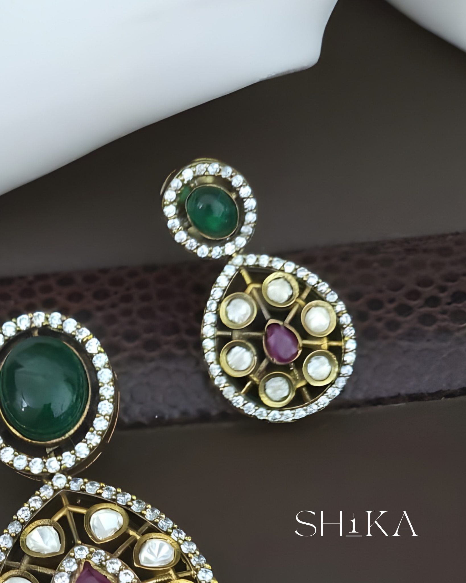 Materials used: Brass Alloy with Antique Gold Finish, CZ Stones